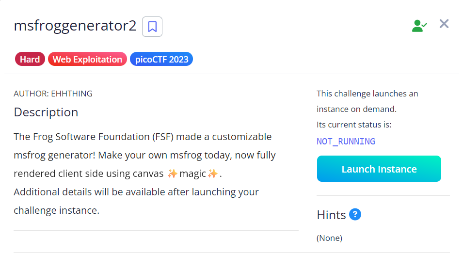 msfroggenerator2 is an Web Exlpoitation challenge. It is an hard category challenge. Here is an first look of the challenge